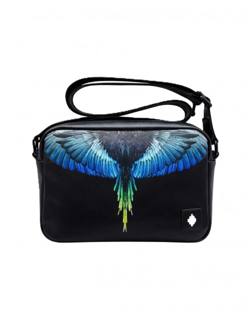 Borsa a tracolla Marcelo Burlon County Of Milan unisex nera e blu in 100% poliestere modello COMAS260353 con: