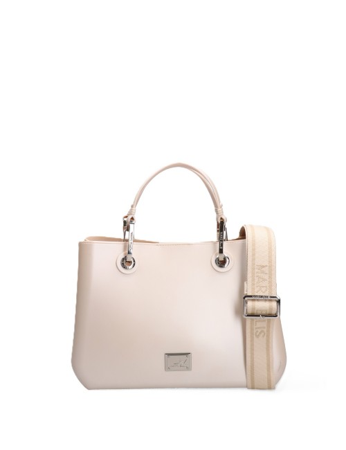 Borsa Marc Ellis donna beige e argento in 100% pvc e pochette interna in 100% cotone modello FLAT KIRA con: