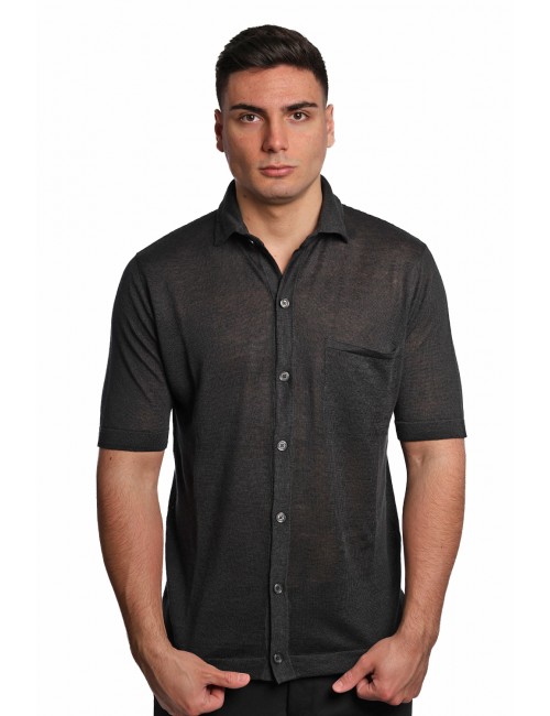 Camicia Masq uomo nera in 100% lino modello M5425-3400 con: