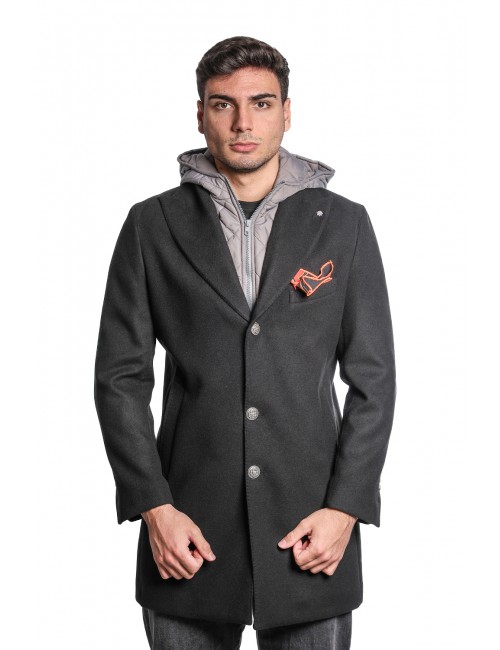 Cappotto Bharnaba Philosophy uomo nero in 94% poliestere, 5% viscorsa e 1% elastan modello NIGERIA - CP-2010GB con: