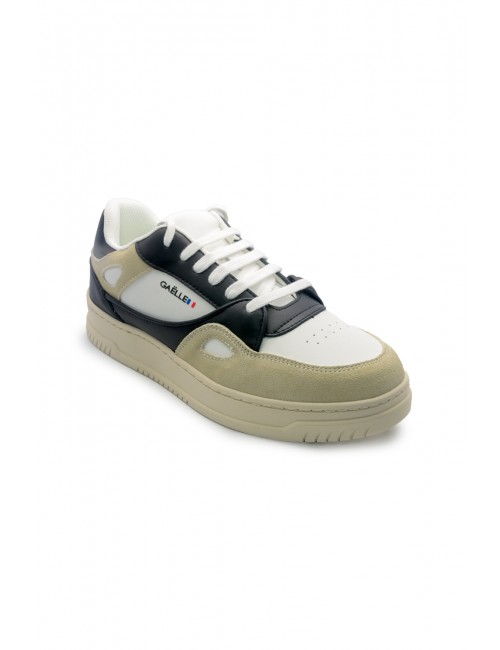 Scarpe Gaelle Paris uomo bianche e nere in pelle e camoscio modello GACAM00015 con: