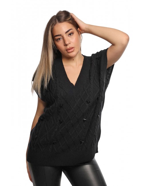 Maglione a gilet Jijil donna nero in 50% acrilica e 50% lana modello JPI25MK009 con: