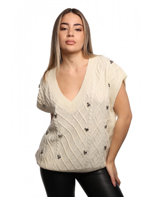 Maglione a gilet Jijil donna vaniglia in 50% acrilica e 50% lana modello JPI25MK009 con: