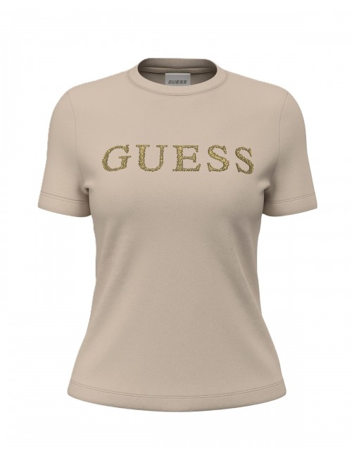 T-shirt Guess donna beige in 95% cotone e 5% elastan modello V6RI20J1314 con: