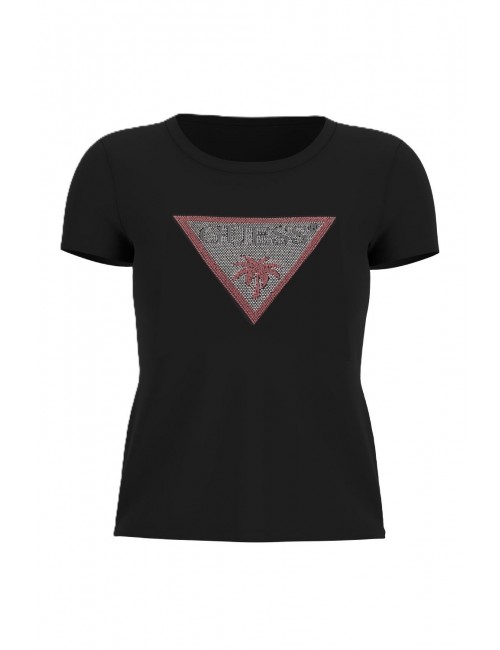 T-shirt Guess donna nera in 95% cotone e 5% elastan modello E5GI08J1314 con: